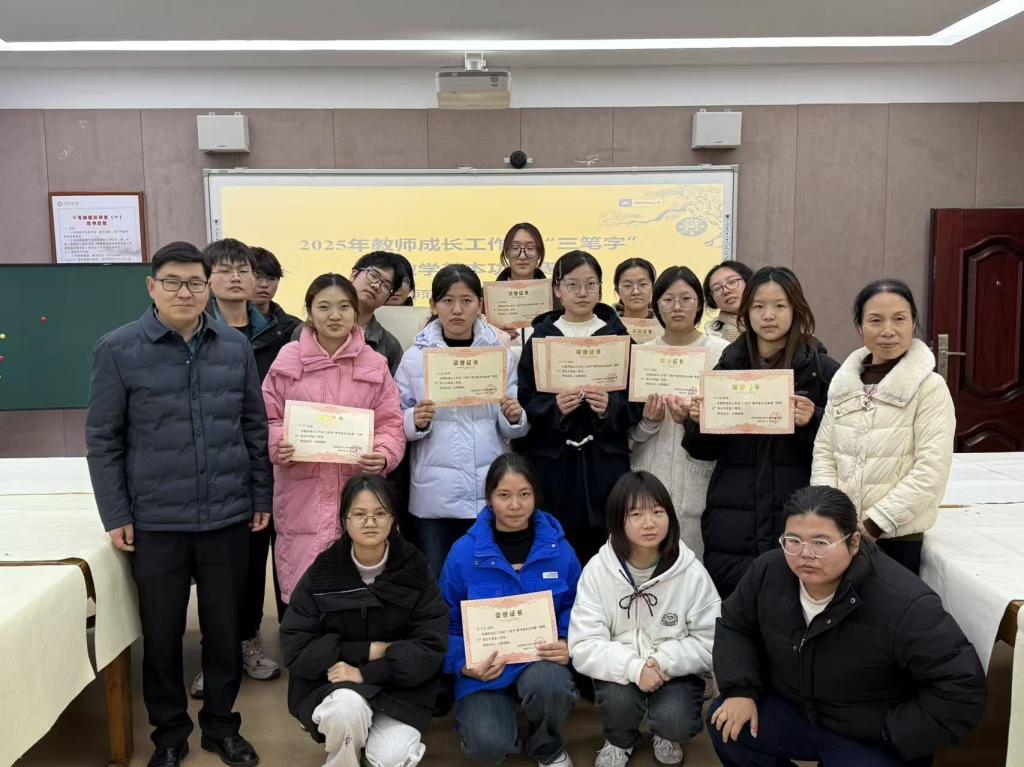 在随后举行的颁奖仪式上,获奖学子依次登台,从老师手中接过荣誉证书并与老师们合影留念,记录下专业技能成长的宝贵瞬间。公司师范生工作坊举办“三笔字”(粉笔、钢笔、毛笔)竞赛对于锤炼师范生的教学基本功,强化师范生职业素养,传承中华优秀传统文化以及增强师范生的职业使命感都具有十分重要的意义,并为他们的未来教员工涯奠定坚实基础。