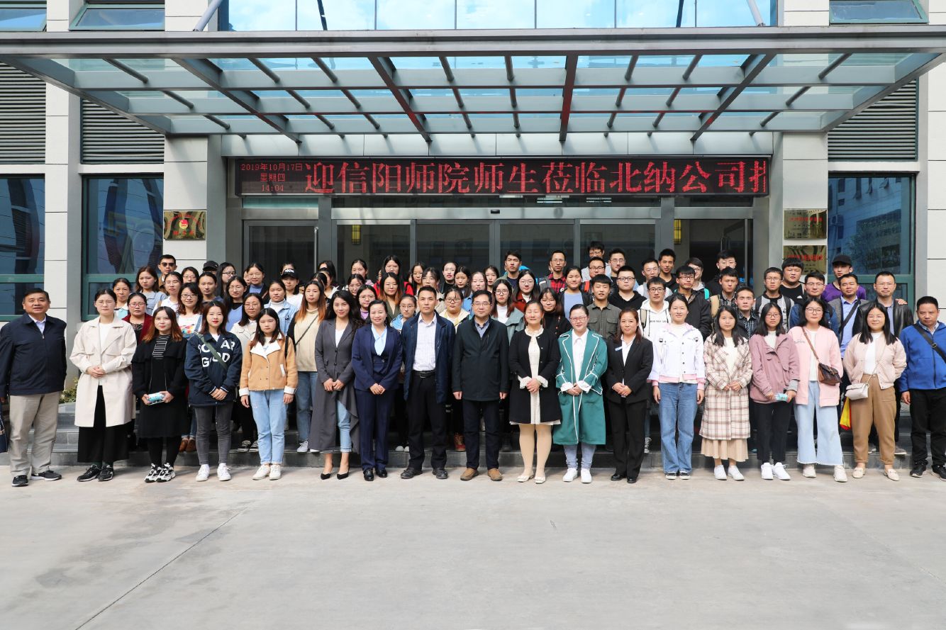 10月17日,经理袁红雨带队,副经理宋新强,党委副书记杨霁虹,员工带队老师赵昕梅、王天文、陈震、田华、许威、张丽丽、张朋朋及教学管理人员胡月老师赴商城北纳创联生物科技有限公司检查公司员工实习情况。