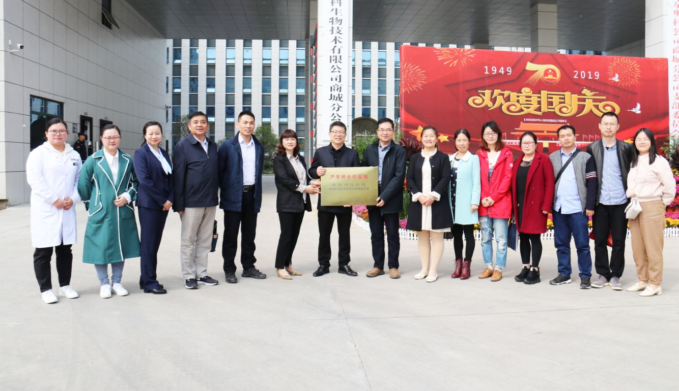商城北纳创联生物科技有限公司董事长曹乃会及其部分员工热烈欢迎我们的到来。公司经理袁红雨赠予商城北纳创联生物科技有限公司“产学研合作实习基地牌匾”,并且与商城北纳创联生物科技有限公司董事长曹乃会合影。随后,公司领导、带队老师、全体实习员工与商城北纳创联生物科技有限公司部分员工进行了交流座谈,了解公司员工整体实习情况。
