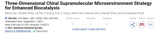 相关研究成果以“Three-Dimensional Chiral Supramolecular Microenvironment Strategy for Enhanced Biocatalysis”为题发表在ACS Nano(IF:15.881)上(https://pubs.acs.org/doi/abs/10.1021/acsnano.1c05212)。