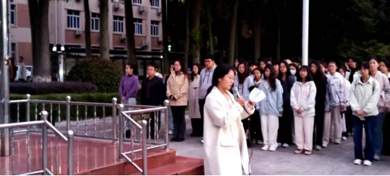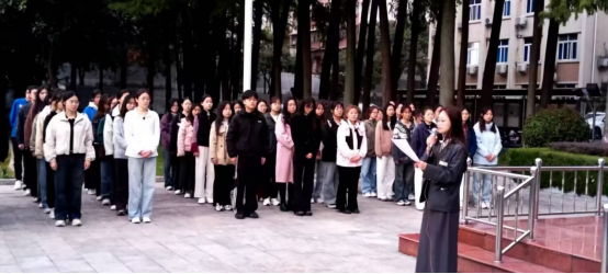 在雄壮的国歌声中,鲜艳的五星红旗冉冉升起,迎风飘扬。全体师生肃立注目,共同见证了这庄严而神圣的时刻。仪式结束,2024级员工代表许甜甜进行发言,许甜甜强调作为时代青年更应具有深厚的爱国主义情怀,爱党、爱国、爱人民、爱社会主义,维护民族团结,积极投身于新时代中国特色社会主义建设中。呼吁当代青年要以爱国作为青春底色,自信自强、无私奉献,以青春之我、奋斗之我,创造青春中国。