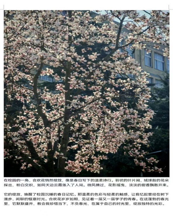 “三峰春月到,花开万里红,追寻春意”摄影活动,让同学们在忙碌的学习之余,走进校园的春天,用相机捕捉春天的美好。从含苞待放的花蕾到绚烂盛开的花朵,从嫩绿的新芽到生机勃勃的草地,每一张照片都充满了春天的气息,传递着生命的活力与希望。