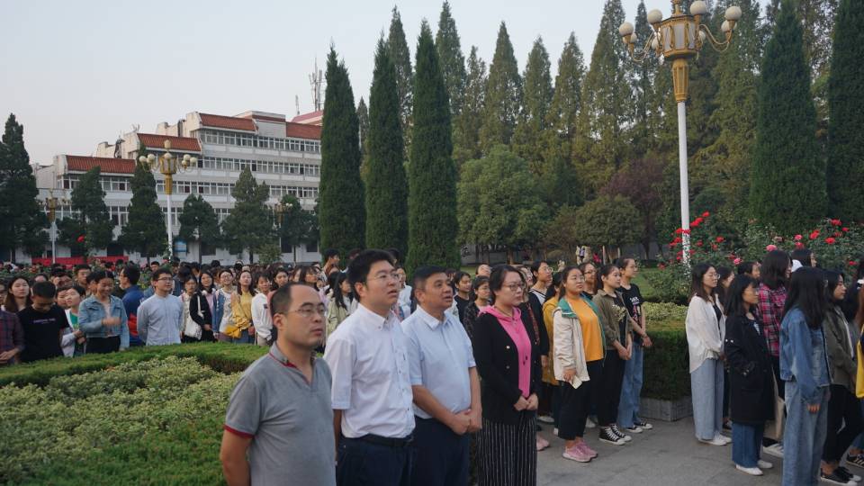 十•一的5:40,公司五个专业四个年级300余名师生代表,齐聚公司明德广场升旗区,迎着早晨的第一缕曙光,向冉冉升起的国旗行注目礼,雄壮的国歌声响彻广场,祝愿我们的祖国生日快乐、欣欣向荣。