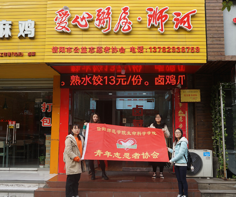 为丰富学子的校园文化生活,使其了解爱心粥屋的奉献模式,自11月11日起,由青年志愿者协会主办,信阳市公益志愿者协会、平桥区青年志愿者协会协办的以“爱心粥屋,风雨无阻”为主题的公益活动在浉河区爱心粥屋举办。社团部分成员参加此次活动。