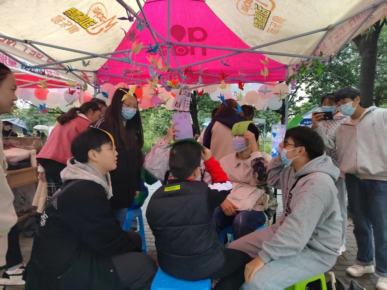 本次心理游园会活动采用个人与团体相结合的游戏模式,鼓励每位同学参加,让同学们在畅游心灵家园的过程中寻找真实自我,拥抱健康心灵。游戏主要分为“隐秘的自己”,“色眼识字”,“跳绳传乒乓球”,“魔力投投乐”,“不要做挑战”五个环节。其中在“隐秘的自己”环节里,参与者可以测试出心理年龄,找到最真实的自己和最适合自己的职业;“色眼识字”环节需要挑战者依次读出图片上各字的颜色,考验了挑战者的反应能力;“跳绳传乒乓球”环节则要求参与者相互配合将乒乓球由一侧传至另一侧,经过两个来回即为成功,培养了参与者的合作意识,增进了同学之间的感情。通过游戏时的交流互动,同学们在欢声笑语中释放学习和生活上的压力,提高了心理保健意识和心理调适能力。同时,正值学习党的二十大精神之际,心理游园会的举办亦助力老员工健康成长,完成校园育人的使命,激发员工们的爱党爱国热情。
