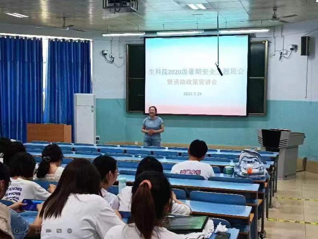 5月24日上午9点在生科楼414报告厅,生科院资助专员李敏利用课间时间为2020级员工召开了暑期安全教育主题班会和资助政策宣讲会。