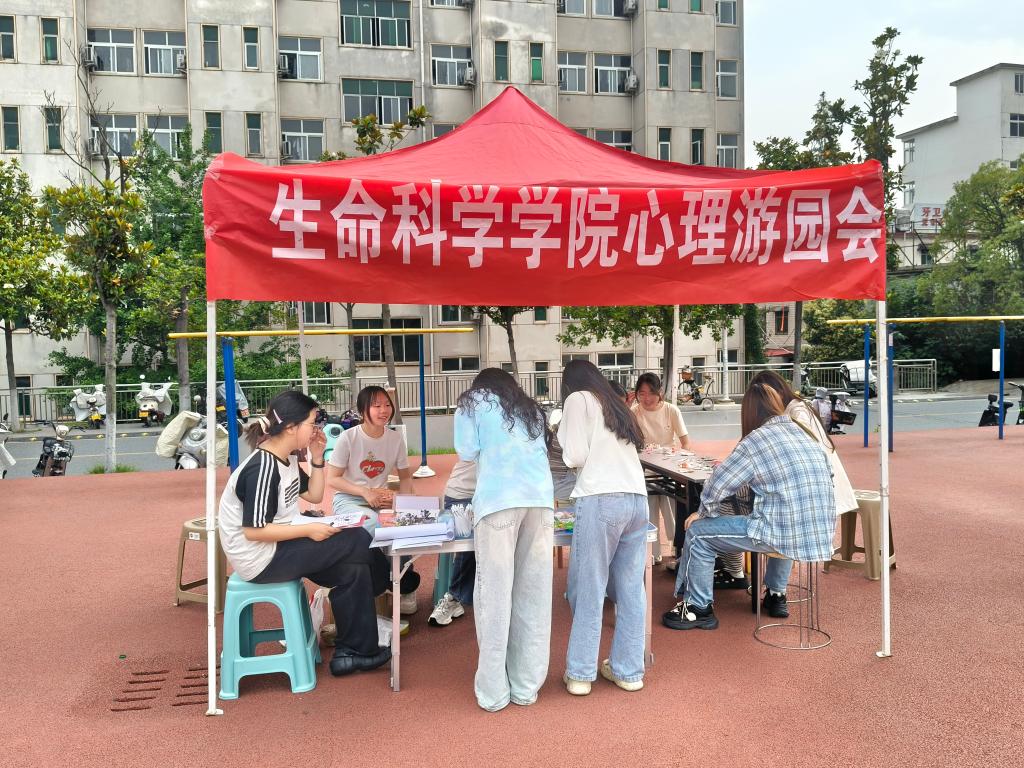 本次心理游园会精心设计了个人挑战和团队协作相结合的多种趣味互动游戏,为同学们提供了多样化的参与体验。游戏主要分为“倒放大挑战”、“猜五官”、“心会同频,共创美好”和“加字游戏”四个环节。单人游戏“倒放大挑战”,参与者通过模仿和猜测倒放的句子可以考验专注力,缓解焦虑情绪;双人游戏“猜五官”,两人快速问答指认五官,考验反应与协调能力;团体游戏“心会同频,共创美好”,通过接力作画以非语言交流完成主题创作并分享感悟,帮助参与者表达情绪,培养团队协作能力;还有“加字游戏”,多人依次扩展词语成句,锻炼逻辑与即兴表达能力。活动通过轻松有趣的形式促进心理调适,现场气氛热烈,深受师生欢迎。