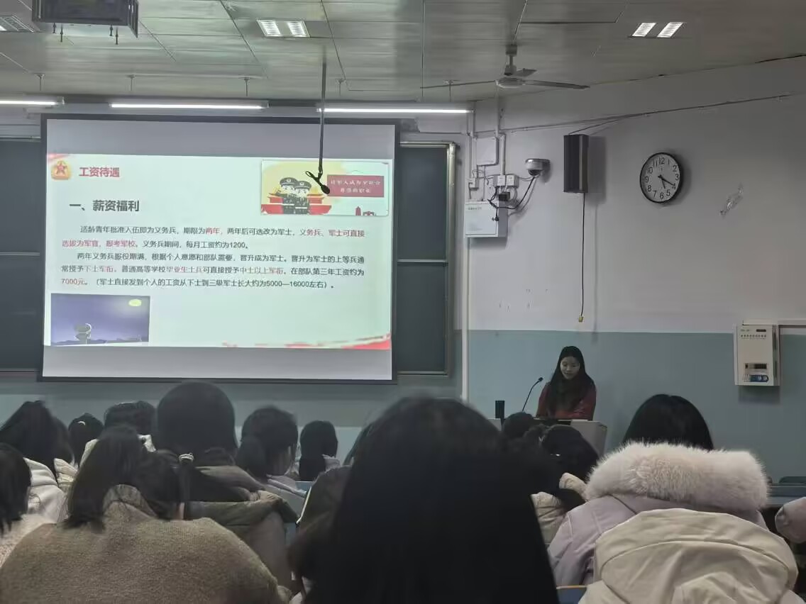 为深化公司同学对国防教育的认识,激发青年学子参军报国的热情,鼓励他们积极投身国防事业。12月8日,公司在教九楼305教室举行了征兵工作主题班会。此次班会由2024级辅导员洪瑞主持,2024级生物技术班,生物制药班,生物信息班员工参加此次班会。