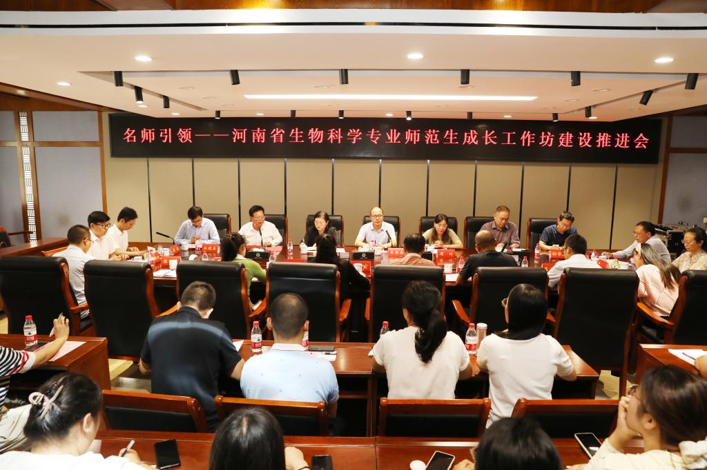 为深入贯彻落实“河南省师范教育质量提升行动计划”,探索在名师引领条件下,生物科学专业师范生人才培养模式创新机制和综合素养提升路径,着力培养具有优秀师范生素养和实践创新能力的生物学骨干教师和卓越教师,公司于9月28日在逸夫楼321会议室召开了“名师引领——河南省生物科学师范生成长工作坊建设推进会”。来自华中师范大学和信阳市中员工物教学方面的权威专家、全国模范教师、省级教学名师、骨干教师和优秀教师,以及工作坊的坊主、副坊主、tyc122ccVIP全体领导班子、教师代表和员工代表共60余人参加了本次会议。建设推进会由彭波副经理主持。