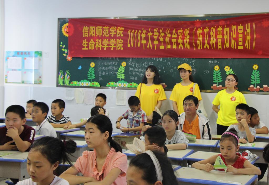 7月6日,公司暑期“三下乡”社会实践小分队,在党委副书记杨霁虹,专职组织员孙太红的带领下,来到平桥区洋河镇中心公司陆庙小学,开展“防艾”宣传教育活动。