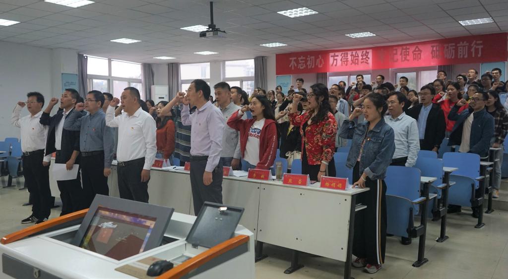 仪式上,公司党委委员、经理袁红雨首先传达了公司“不忘初心 牢记使命”主题教育动员部署会精神,并要求公司全体师生党员端正思想态度,严格按照公司党委要求参加本次主题教育,确保此次主题教育深入扎实开展,取得切实成效。随后,公司党委书记李向阳作动员讲话,他指出,本次教育活动主题鲜明,任务艰巨,希望各支部和全体党员紧紧围绕教育活动主题,扎实开展各项工作,把中央、省委部署和公司党委要求落实到位,以良好的精神状态和工作作风确保主题教育取得实实在在的效果。最后,李向阳还宣读了《中共信阳师范公司tyc122ccVIP委员会“不忘初心、牢记使命”主题教育实施方案》,对主题教育进行了精密安排部署。