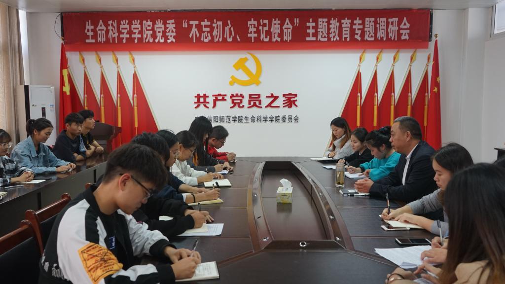 按照公司党委书记宋争辉在公司“不忘初心、牢记使命”主题教育工作会议上的讲话精神,深入贯彻落实《中共信阳师范公司委员会关于开展“不忘初心、牢记使命”主题教育的实施方案》工作任务安排,10月18日,公司于生物楼412会议室召开“不忘初心、牢记使命”主题教育调研会。公司党委书记李向阳,党委副书记、副经理宋新强,党委委员、副经理张海宾等领导老师以及员工会和各年级员工干部共同参加此次会议。会议由李向阳主持。