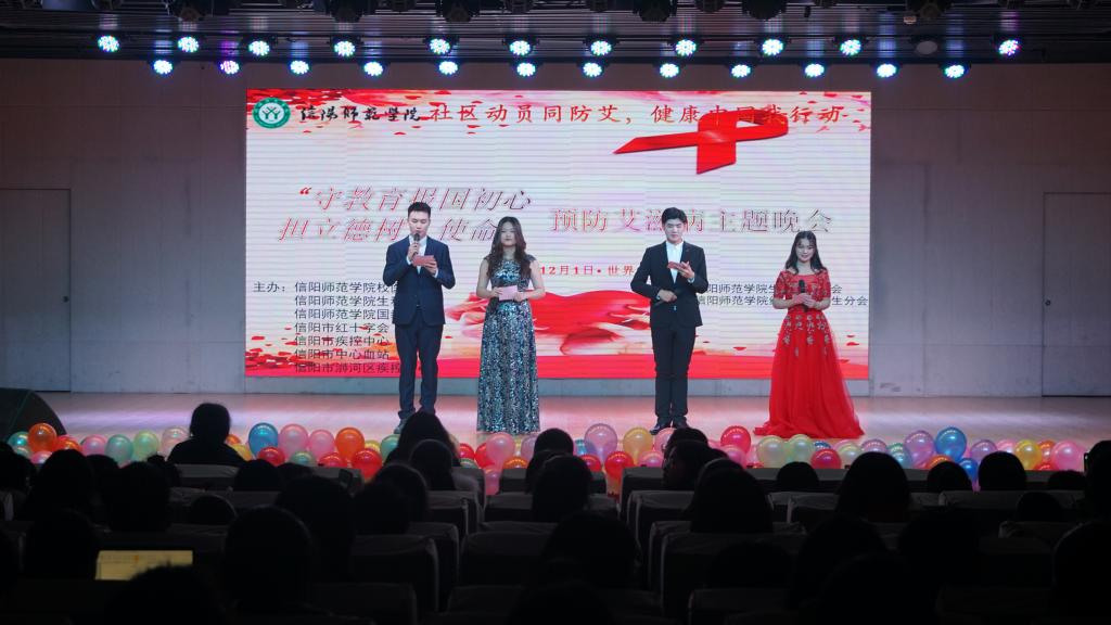 为贯彻不忘初心,牢记使命的主题教育精神,推进建设健康中国的总体要求,做好全民参与艾滋病防治工作。12月1日,由信阳市红十字会,信阳师范公司校医院,tyc122ccVIP,国际教育公司主办,生命科技协会和红十字会员工分会承办的“守教育报国初心,担立德树人使命”预防艾滋病主题晚会于理科楼报告厅举办。公司党委书记李向阳,党委副书记杨霁虹, 校医院办公室主任陈震等领导老师莅临现场,与数百名学子共同观看此次晚会。