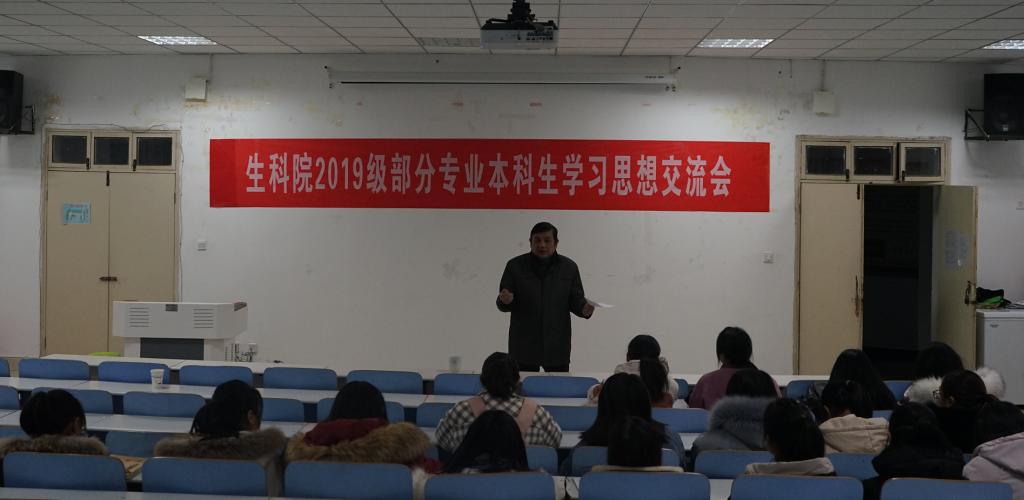 12月16日,公司在生物楼414教室,召开2019级新建专业本科生学习思想交流会,邀请生科公司党委副书记杨霁虹开讲,辅导员杨娟娟主持。