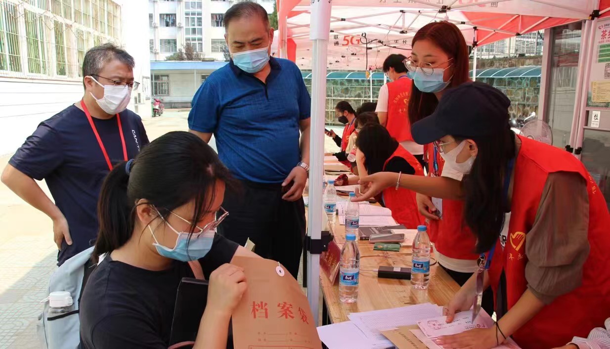 校员工工作部(处)部长王建旭带领相关人员到公司迎新现场检查指导工作。生命科学公司党委书记李刚、经理饶本强与新生亲切交流,询问员工报到注册情况、遇到问题及时解决情况,要求工作人员为新生提供热情周到、高效便捷服务的同时做到严实精细地落实公司常态化疫情防控措施,并且希望工作人员精心组织、通力合作,营造安全、高效、有序的迎新工作环境和热烈温馨的氛围,扎扎实实做好各项迎新工作。