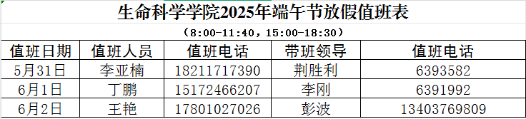 根据《河南省教育厅办公室关于2025年端午节放假安排的通知》和公司《关于2025年端午节放假安排的通知》精神,2025年端午节放假日期为:5月31日(周六)至6月2日(周一)放假,共3天。
