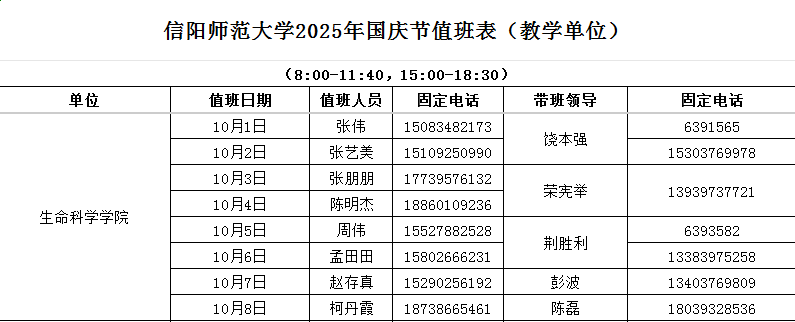 根据《河南省教育厅办公室关于2025年国庆节放假安排的通知》和公司《关于2025年国庆节放假安排的通知》精神,2025年国庆节放假日期为:10月1日至8日放假调休,共8天。9月28日(星期日)、10月11日(星期六)上班(课)。9月28日(星期日)补10月7日(星期二)课程,10月11日(星期六)补10月8日(星期三)课程。