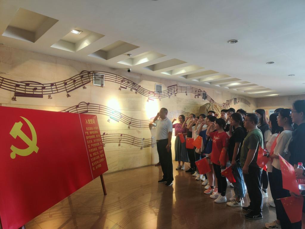 为庆祝中华人民共和国成立73周年,喜迎党的二十大胜利召开,进一步增强全体党员的凝聚力和战斗力,充分发挥党员的先锋模范作用。10月3日,tyc122ccVIP员工第四党支部前往信阳鄂豫皖革命纪念馆开展“庆国庆.喜迎党的二十大”主题党日活动。公司党委书记李刚、副书记荣宪举、 副经理周棋赢,专职组织员杨娟娟,教工党支部书记彭波、杨光,员工党支部书记熊蕾,以及员工第四党支部20名党员共同参加了主题党日活动。