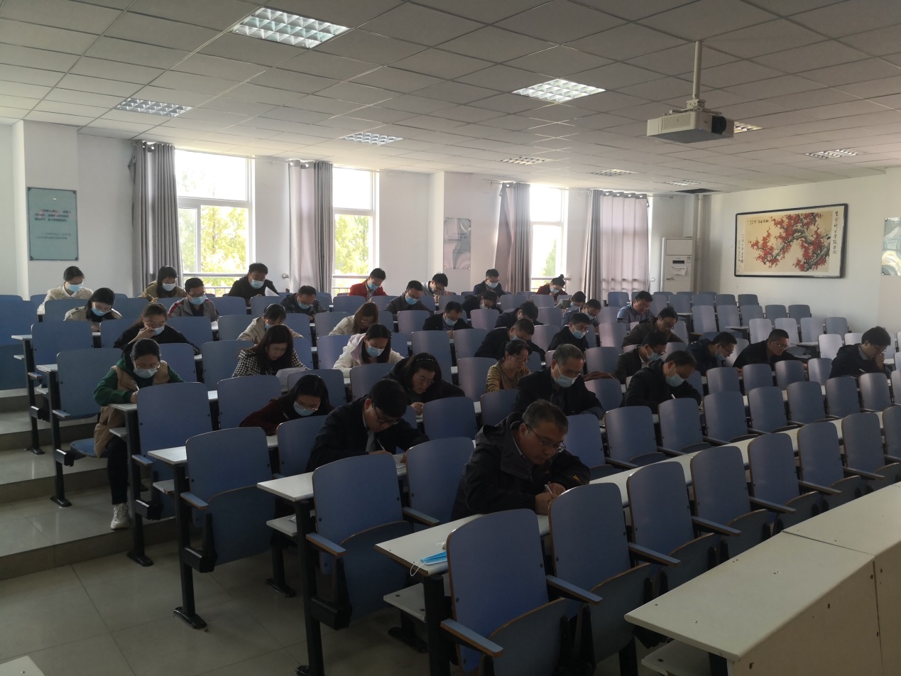 10月18日下午,tyc122ccVIP组织教工党员开展了党员干部应知应会知识测试活动,42名教工党员参加测试。
