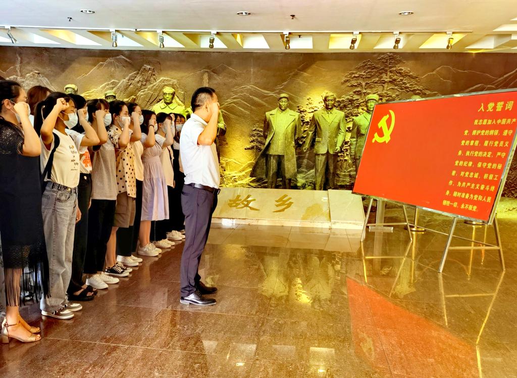 6月5日,公司党委在信阳市鄂豫皖革命纪念馆举行2021年上半年新党员入党宣誓仪式。公司党委书记李向阳、副书记杨霁虹,专职组织员孙太红,员工党支部书记杨娟娟、熊蕾、李敏,以及新发展的44名预备党员参加了宣誓仪式。会议由孙太红主持。