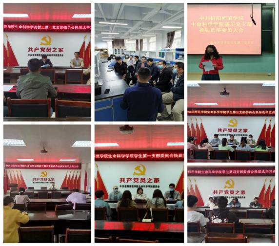 换届会议上,7个党支部分别由上届委员会(或党支部书记)代表上届支委会对2017年6月以来的任期工作向支部党员大会作了工作报告,与会党员审议并表决通过了各党支部的任期工作报告、《中共信阳师范公司tyc122ccVIP委员会基层党支部换届选举办法》、党支部新一届支部委员会委员候选人正式人选名单及大会选举监票人、计票人名单。随后,各党支部以无记名投票的形式差额选举产生了党支部新一届委员会委员。